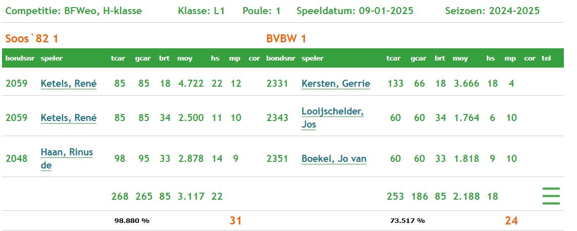 Team 1 Ronde 14 2024 - 2025