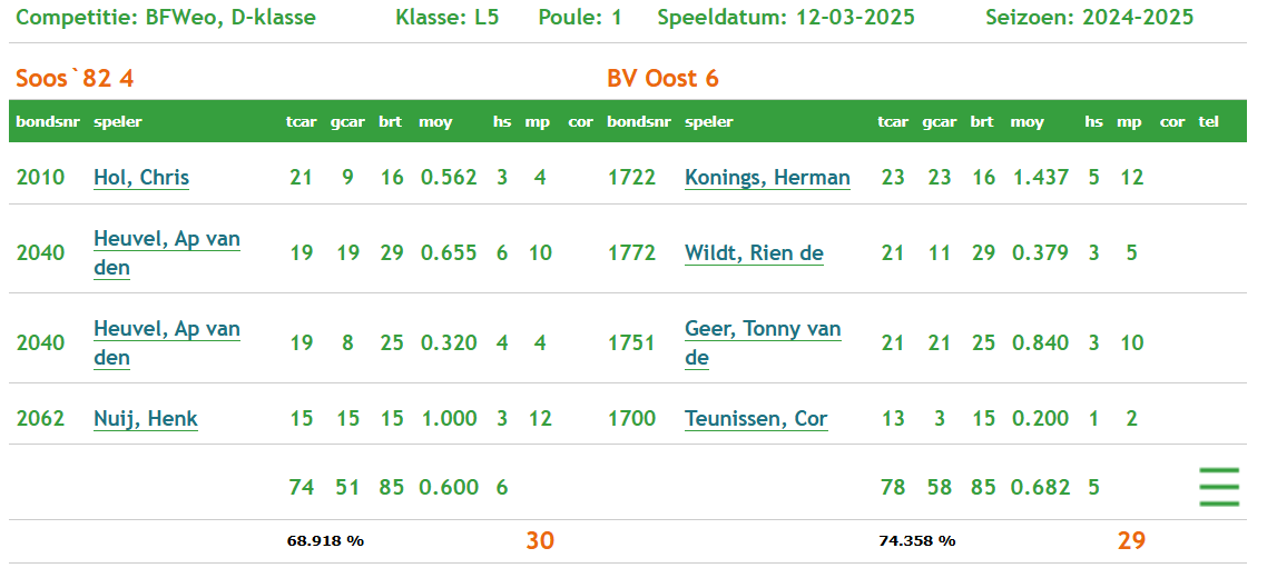 Team 4 Ronde 27 2024 - 2025